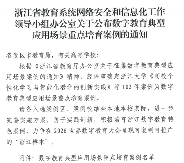 喜报:我校一项案例入选省级数字教育典型应用场景...