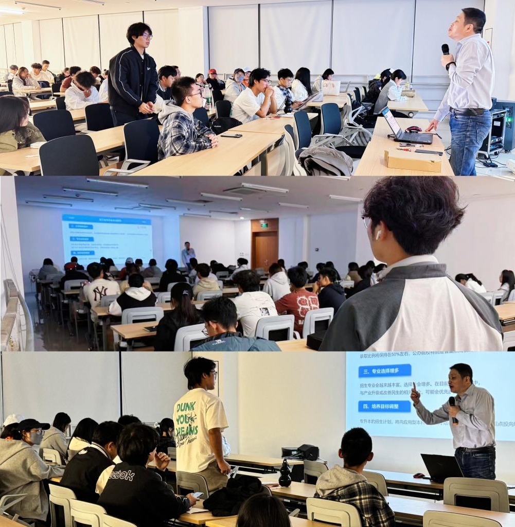 本次讲座特邀杭州杰程教育科技有限公司的罗贤林老师担任主讲。他以清晰的逻辑层层展开:首先解析浙江省专升本考试的政策导向与发展趋势,帮助同学们找准备考“大方向”;接着结合学习规律提供阶段性复习方案,将抽象的“备考计划”转化为可落地的具体步骤;最后现场演示杰程专升本云课堂的使用方法,将优质学习资源的“使用指南”直接送到同学们手中,只需4步就能开启学习之旅: