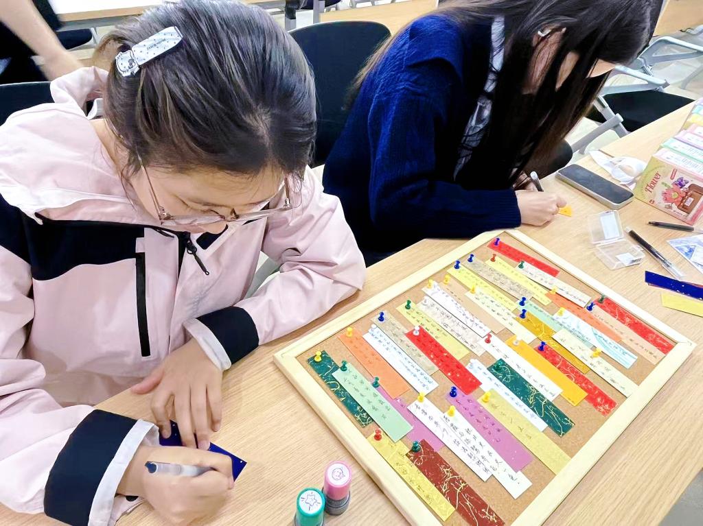 活动现场摆放零散诗词文字碎片,大家自由组合、拼接创作,完成专属春日诗词作品。在平仄韵律的碰撞中,细细体悟中华文字之美,走进古典文学的诗意世界,加深对传统文化的理解与热爱。