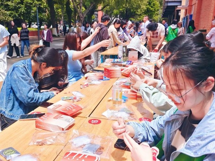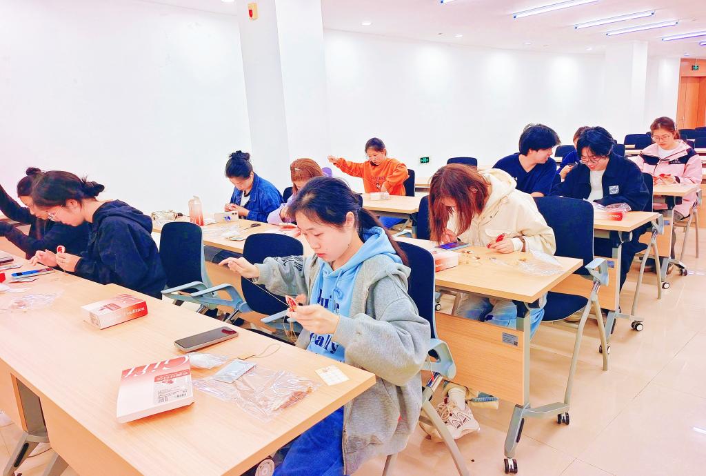 活动现场准备了传统药草香料与定制香囊材料,同学们亲手搭配香料、缝制香囊,在动手实践中传承中华传统文化,慢下节奏舒缓身心,把春日的雅致与美好祝福,悉数装进小小的香囊之中。以手作感受草木智慧,在穿针引线间品味书香之外的东方雅韵。