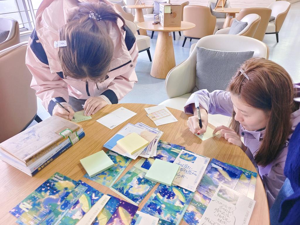 同学们提笔写下日常困惑、生活感悟,投入专属解忧信箱;同时通过现场品读经典书籍、抽取励志祝福明信片,在文字的力量中获得精神慰藉,实现温和的情绪疏导,搭建起心灵交流的温馨港湾。